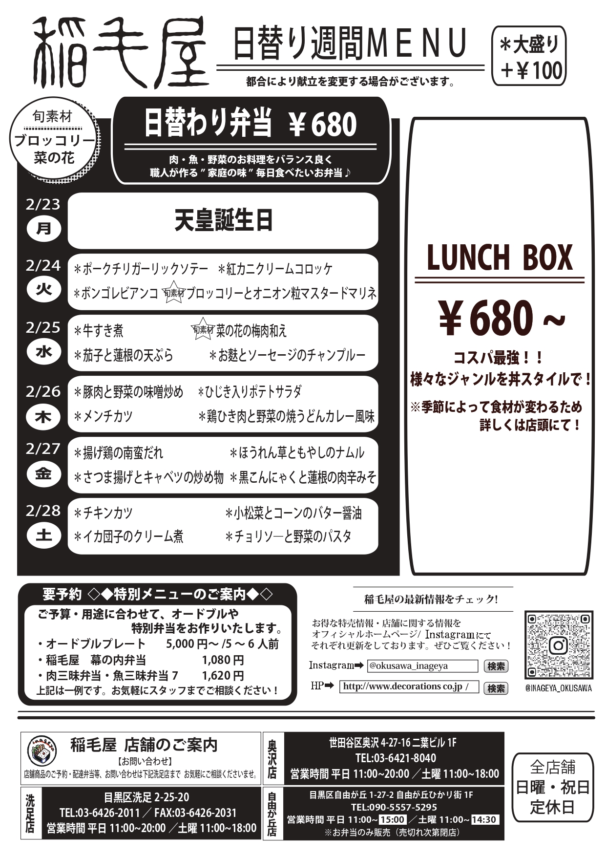【日替わりメニュー】2026年2月23日(月)~2月28日(土)