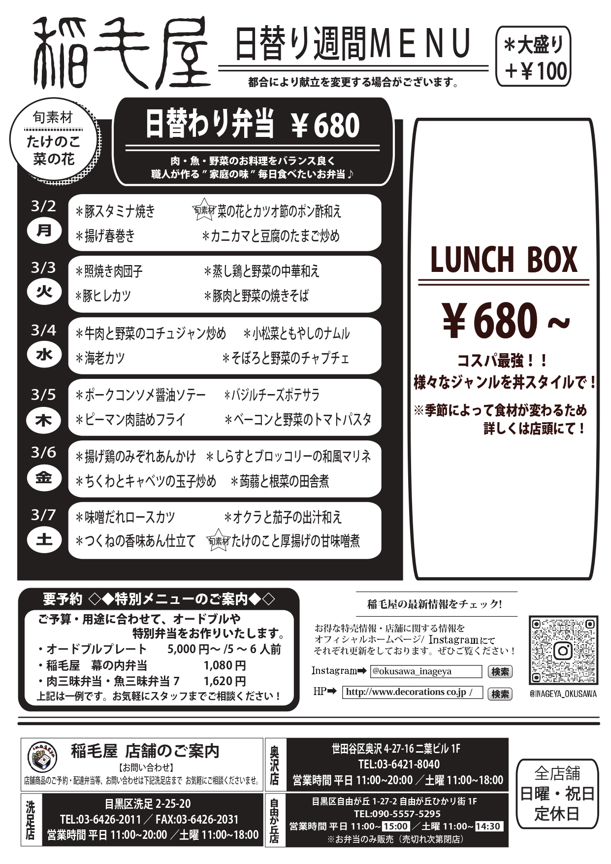 【日替わりメニュー】2026年3月2日(月)~3月7日(土)