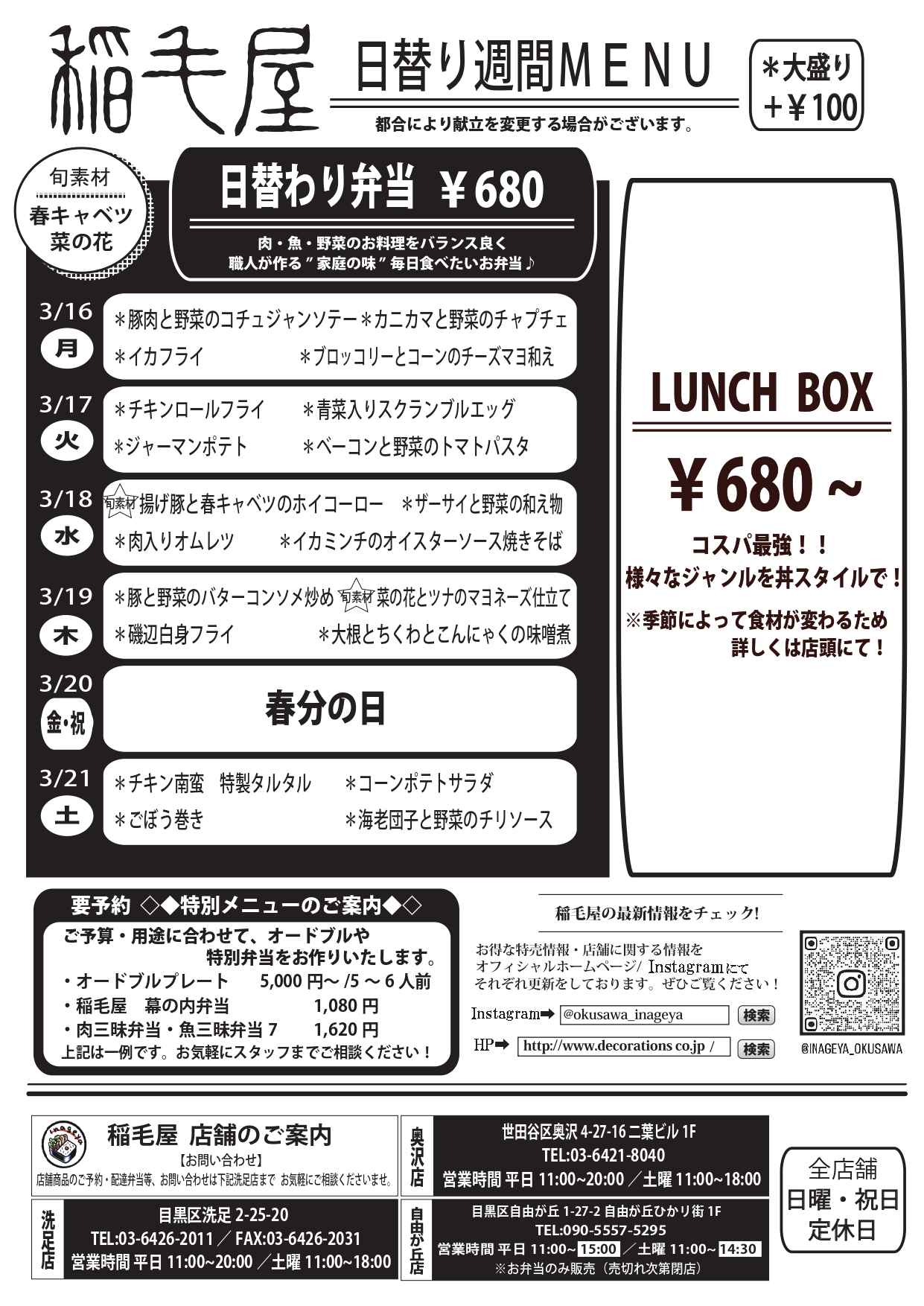 【日替わりメニュー】2026年3月16日(月)~3月21日(土)
