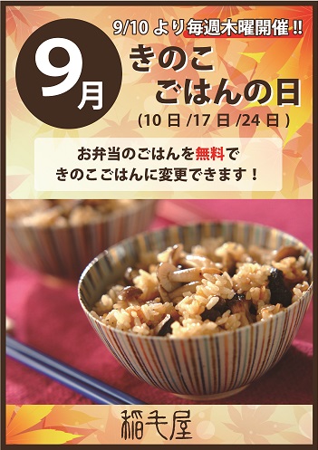 ベジキチでも実施予定の「きのこごはんの日」を稲毛屋でも実施します!