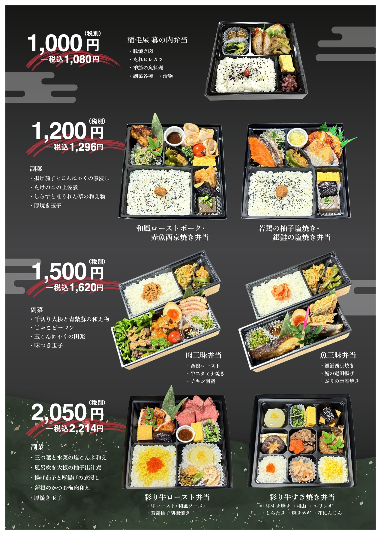 *配達弁当は、15,000円(税別) 以上のご注文からお願い致します。